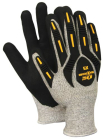 Sömlös stickad armeringsshandske i mjuk och smidig chineemafiber vilket ger en hög komfort. Maximalt skärskydd i nivå 5, samt högsta nivåer skydd för samtliga egenskaper enligt EN388. Skrap och slagskydd i TPR för ovanhand samt ovanpå fingrar. Doppad i slitstark microfoamad nitril som ger ett bra grepp. Handsken är silikonfri, fri från lösningsmedel och lämnar inga fingeravtryck.