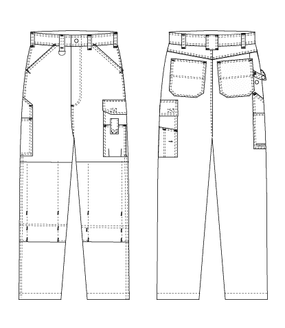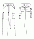 Funktionell arbetsbyxa med modernt snitt och dekorstickningar. D-ring i höger hälla. Sidfickor. Bakfickor. Benficka med ficklock och telefonficka. Tumstocksficka med pennficka. Förstärkt tumstocksficka med HTPA. Hammarhank. Ställbara knäfickor i HTPA.