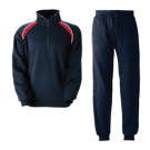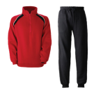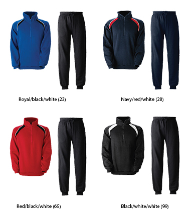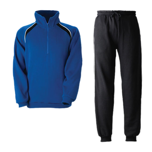 Klubboverall med collegetröja och byxa. Tröjan har högre hals och dragkedja. Byxor med två sidofickor och piping längs sidorna. Elastiska muddar. Material: 60% bomull/40% polyester. Vikt: 280 gr/m² Storlekar: 120–140–160–XS–S–M–L–XL–XXL Tvättråd: 40°