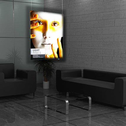 LumoFrame hängande - LED bakgrundsbelysta textilbilder hängande från tak.